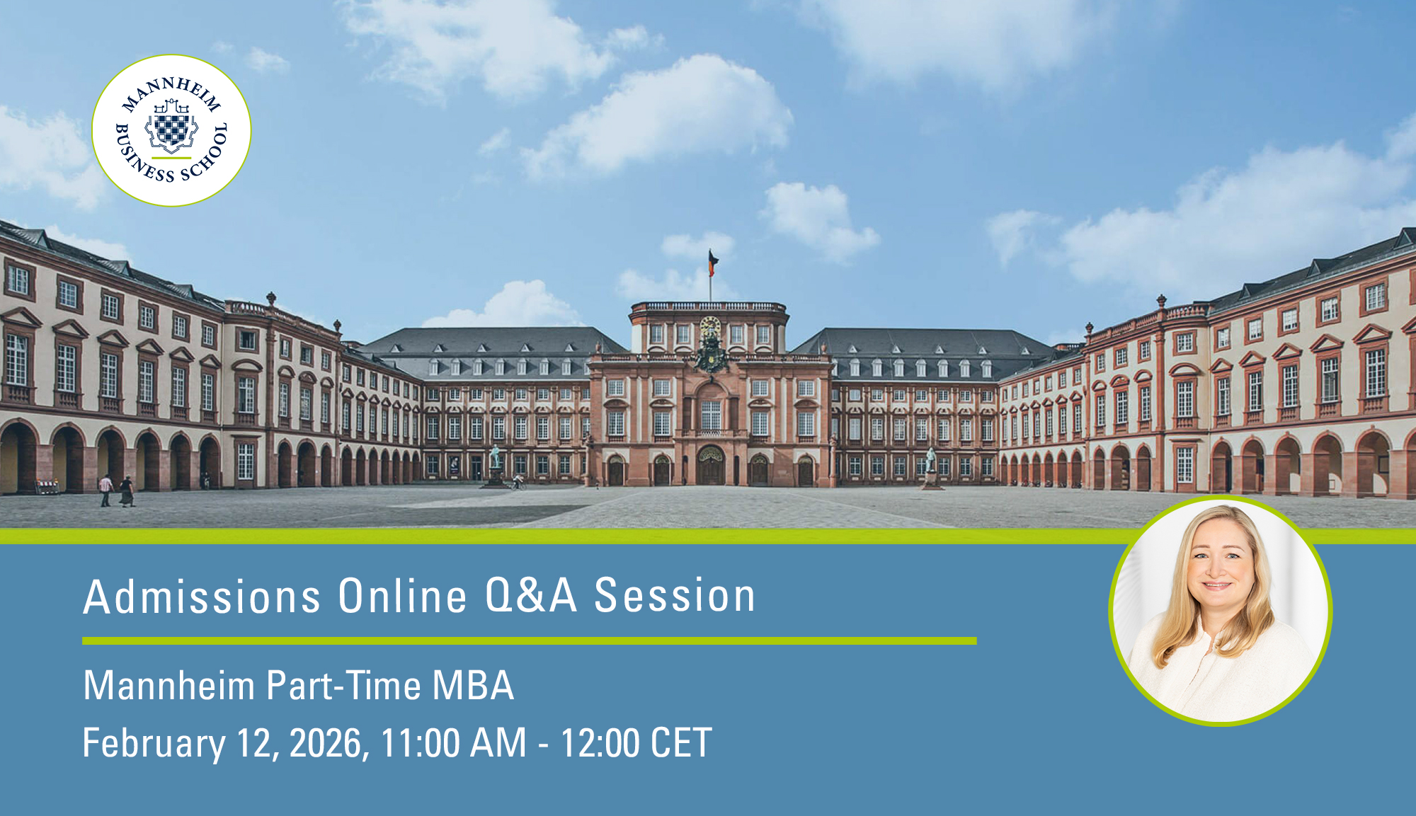 Get to know our Mannheim Part-Time MBA in a short digital Q&A Session and get the opportunity to ask our Admissions Manager all the questions you might have.