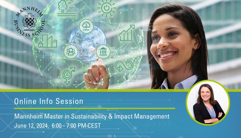 In this Online Info Session, you will receive detailed information about the latest addition to our program portfolio, the Mannheim Master in Sustainability & Impact Management (Part-Time/Blended). How is the program structured? Which contents are taught? How does the application process work? These and many more questions will be answered by our Admissions Team for the program.