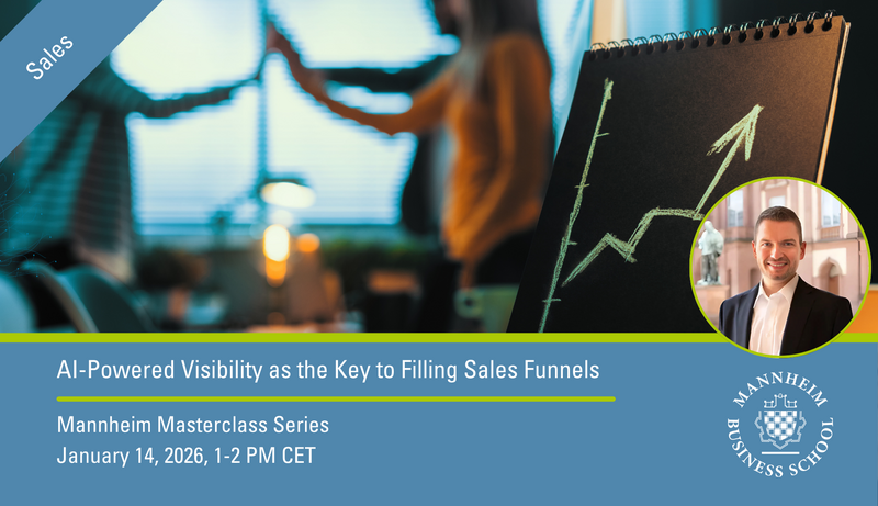 In this interactive and free 60-minute Sales Masterclass, Prof. Dr. Florian Kraus (Dr. Werner Jackstädt endowed chair of sales & services marketing) reveals how AI is reshaping visibility, buyer behavior, and sales funnels and what you must do to stay relevant in an answer-driven search world.